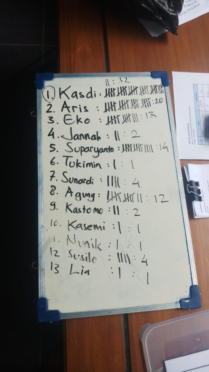 Pemilihan ini diadakan karena ketua RT sebelumnya yaitu Sukardi mengundurkan diri. Dalam proses pemilihan tertutup ini setiap pemilih menuliskan 3 nama berbeda sebagai calon pilihannya. Berdasarkan hasil voting, bapak Kasdi mendapat suara terbanyak yaitu 32 suara. Bapak Kasdi berhasil mengalahkan 12 kandidat lainnya sehingga menjadi Ketua RT 084 yang baru.