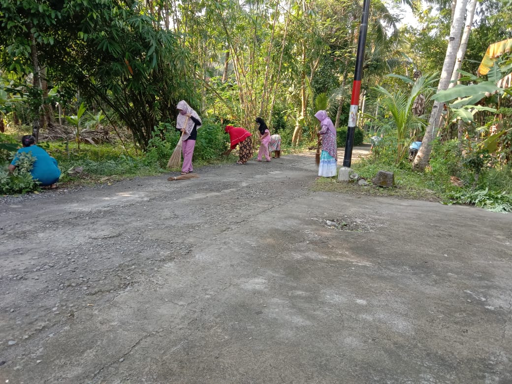 Hargorejo. Jumat bersih (09/04/2021) untuk menyambut Bulan Suci Ramadhan 1442 H, warga RT 106 Padukuhan Sindon bekerja bakti di sepanjang pinggir jalan permukiman dan sekitar Masjid.