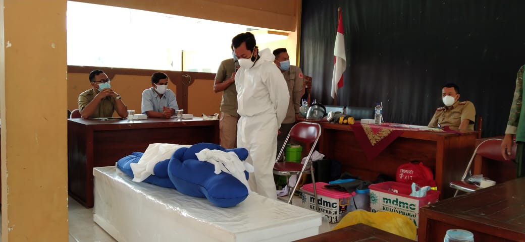 Senin, (23/8/2021). Bertempat di Aula Kapanewon Kokap. Bhabinkamtibmas Hargorejo Bripka Sunarto.S.E bersama Babinsa Serma Sugiantoro melaksanakan kegiatan monitoring pada pelatihan prosedur pemulasaran jenazah terpapar Covid-19. Kegiatan ini diselenggarakan oleh BPBD Kabupaten Kulon Progo yang dihadiri perwakilan dari Tim Kubur Cepat 5 Kalurahan yang ada di Kapanewon Kokap.