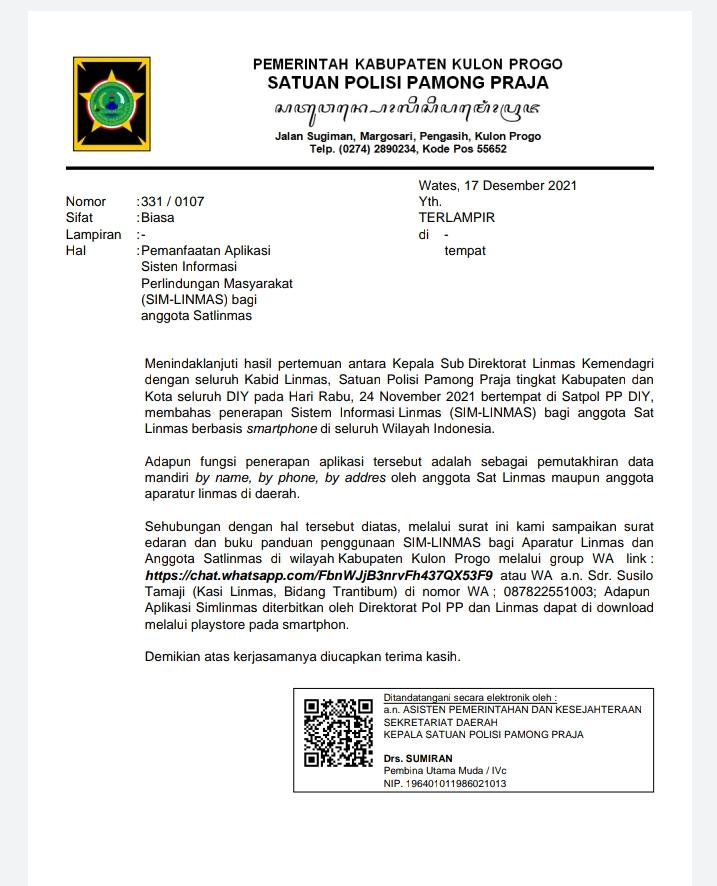 Belakangan ini telah diluncurkan aplikasi SIM-LINMAS (Sistem Informasi Linmas) berbasis smartphone yang ditujukan bagi anggota Satlinmas di seluruh wilayah Indonesia. Fungsinya yaitu untuk memutakhirkan data by name, by phone, by address secara mandiri oleh anggota Sat Linmas maupun anggota aparatur Linmas di daerah. Dengan adanya aplikasi yang diluncurkan secara resmi oleh Direktorat Pol PP dan Linmas ini, para anggota linmas dihimbau untuk melakukan pelaporan secara rutin melalui smartphone.
