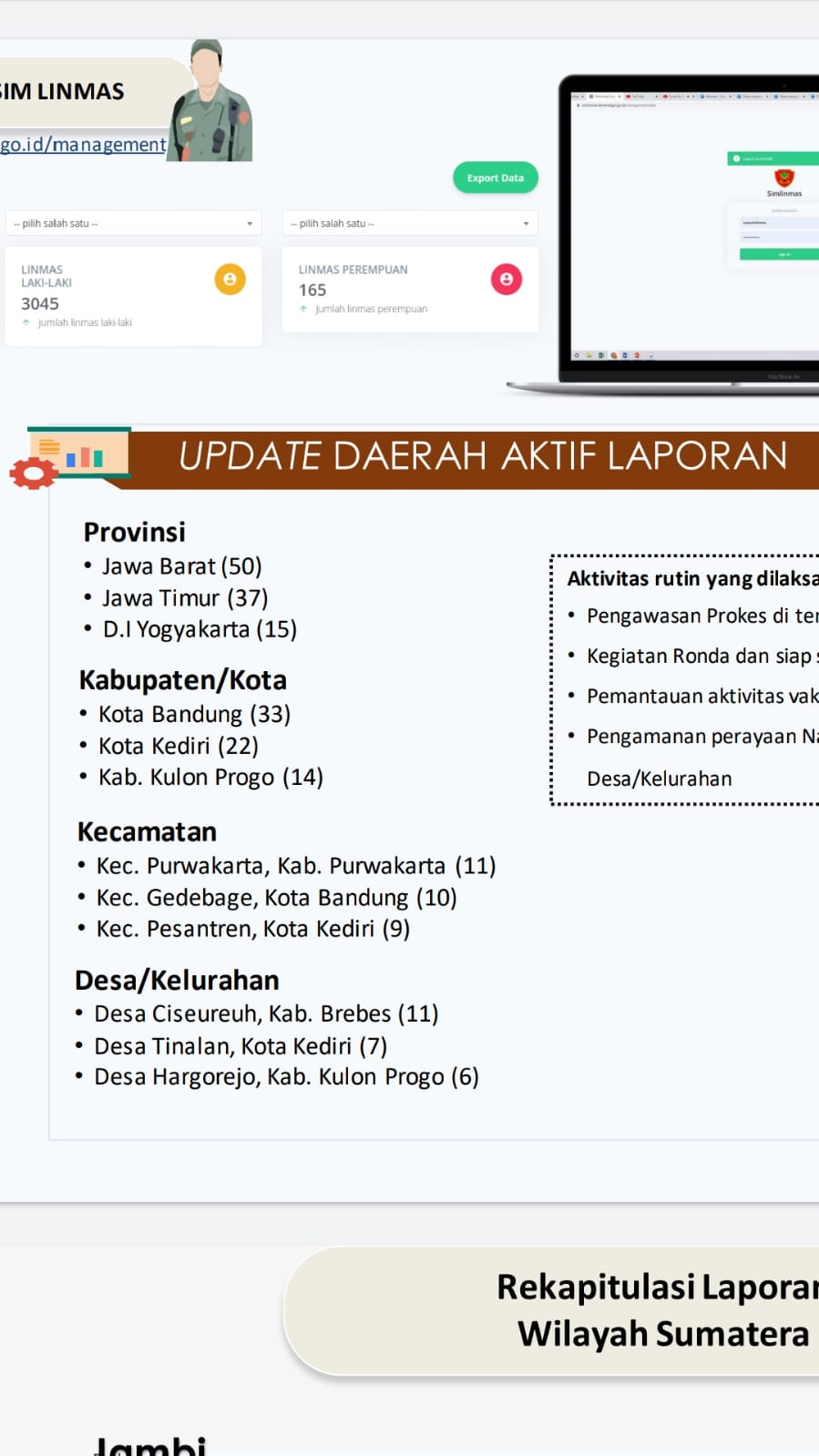 Menurut Komandan Kiri Linmas Hargorejo, Agus Supriyanto, prestasi kali ini adalah berkat keaktifan laporan kinerja Linmas dan update situasi secara nasional.