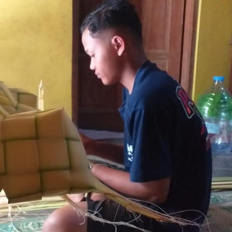 Menjelang Lebaran menjadi momen yang tepat bagi sebagian masyarakat untuk meraup cuan tambahan. Ada yang menjadi pedagang musiman dan ada yang membuat berbagai macam olahan makanan. Bapak Sutarman salah satunya, warga Padukuhan Kriyan RT.113 RW.034 ini bersama istri dan anaknya membuat dagangan ketupat untuk menambah perekonomian keluarga. Bahan untuk membuat kulit ketupat yang berupa janur ini didapatkan dengan mengambil dari pohon kelapa di lahannya dan sebagian membeli dari tetangga.