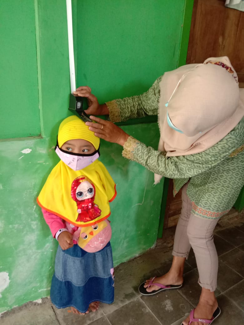 Diawali pengecekan suhu tubuh dan cuci tangan dengan sabun dan air mengalir, setelah itu balita dan ibu yang melakukan kegiatan datang, berkegiatan lalu pulang. Dalam kegiatan ini juga diterimakan vitamin A, mengingat bulan Februari adalah bulan vitamin A. (wir)