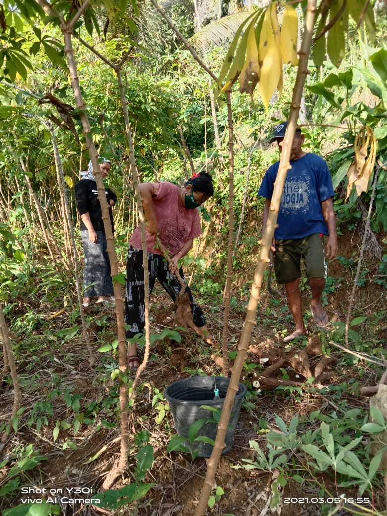 Latar Balai Padukuhan ditanduri telo, aku sak konco migunake latar lan kebonan anggota liya kanggo nandur sayuran. Sayuran kang ditandur kayata : kacang dowo, lombok, terong, lan tomat. Saiki wis mangsane panen. Saben rong ndino pisan aku lan kabeh kancaku panen hasil kebon iku. Sak perangan isa kanggo butuhe pawon, sak perangan meneh isa tak dol kanggo kebutuhan liyane lan ugo ngisi kas kelompok. Tanduran mangsa iki, antarane kacang dowo aku sak kanca alhamdulillah isa panen 90 kilo. Dene lombok Gusti Alloh menehi 50 kg. Dadi naliko uwong-uwong padha ribut rego lombok larang, aku sak konco rodo isa mesem sitik. Ora tuku Lombok, hehe