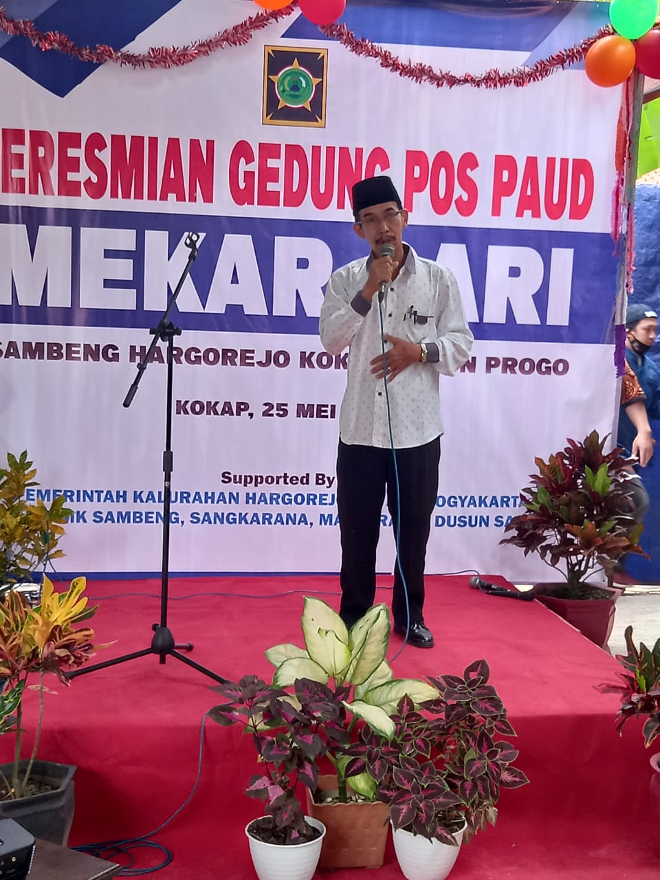 Diresmikan oleh Pj Lurah Ahmad Suyudi, kegiatan ini juga dihadiri oleh Pengurus Himpaudi Kapanewon Kokap, pamong dan tokoh masyarakat, serta dimeriahkan oleh hiburan dari adik-adik peserta PAUD Mekar Sari Sambeng.