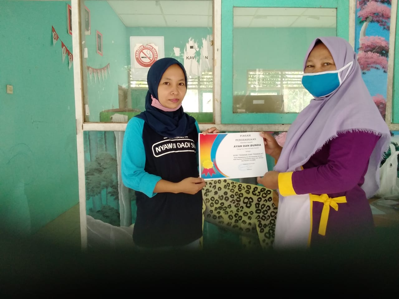Selain membagikan rapot tenaga pendidik juga menyerahkan SKTB (Surat Keterangan Tamat Belajar). SKTB tersebut dibagikan kepada 3 anak didik yang sudah lulus dan masuk TK. Dalam kesempatan ini juga tenaga pendidik memberikan penghargaan kepada orang tua atau wali murid yang telah membantu pelaksanaan BDR selama pandemi.