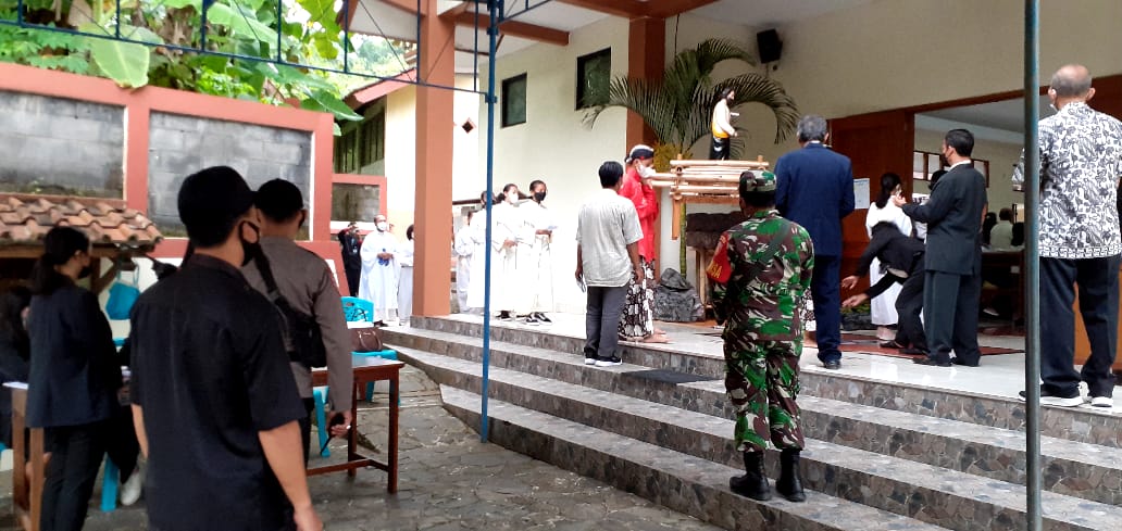 Untuk menjaga agar acara tetap kondusif, Babinsa, Babinkamtibmas beserta Linmas Hargorejo melakukan pengamanan pada acara Perayaan Ekaristi Kudus Penutupan Tahun Santo Yusup yang bertempat di Gereja Katolik Santo Yusup Kokap. Acara yang dilaksanakan sejak pukul 16.30 WIB pada Rabu, 8 Desember 2021 ini berlangsung dengan khidmat.