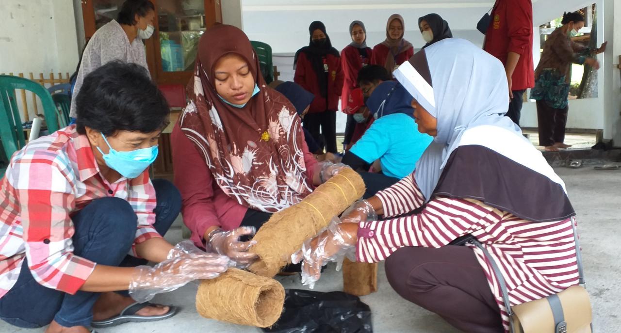 Dari hasil wawancara kami dengan salah satu mahasiswa KKN UMY, mbak Anika Dwi Kusuma, ilmu pembuatan kerajinan ini didapat dari OESAKA (Omah Serabut Kelapa ) Godean Yogyakarta yang di paparkan oleh bpk Ihsan Mubaidi. Harapannya Dengan pelatihan ini bisa menambah wawasan dan pengalaman dalam mengolah limbah sabut kelapa menjadi nilai seni yang berkwalitas.