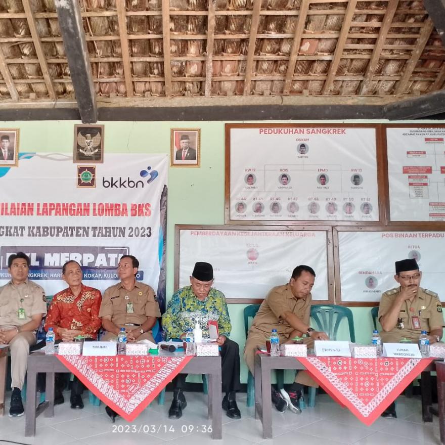 Visitasi lomba yang pertama dilaksanakan di Balai Padukuhan Sangkrek pada Selasa (14/03/2023) pukul 09.00 WIB. Hadir dalam acara ini antara lain Tim Juri dari DPMD Dalduk dan KB, Panewu Kokap, Kepala Puskesmas 1 Kokap yang diwakili oleh Bidan Suharsinah, Lurah Hargorejo, BPKal, TP PKK Hargorejo, Ketua Kampung KB Ceria, PKB Kokap, Babinsa, Babinkamtibmas, Dukuh Sangkrek, Linmas, Ketua RT dan RW, keterwakilan lansia serta kader dan tamu undangan.