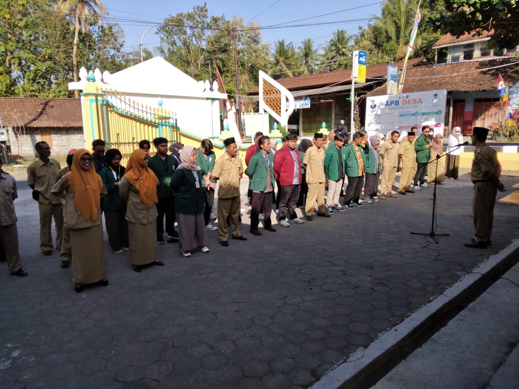 Pembagian Bendera Merah Putih diserahkan langsung oleh Lurah Hargorejo, Bhekti Murdayanto, S.E. disaksikan oleh peserta apel pagi yang terdiri dari Pamong Kalurahan Hargorejo serta mahasiswa KKN dari UIN Sunan Kalijaga dan UMY. Bendera Merah Putih yang diberikan ini agar dikibarkan selama bulan Agustus dan pada hari-hari besar kenegaraan lainnya.