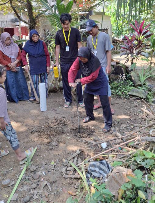 Kegiatan sosialisasi dan pembuatan lubang biopori dilakukan di Padukuhan Sangkrek pada hari Senin, 14 Mei 2025 yang melibatkan 30 anggota Kelompok Wanita Tani (KWT) Sangkrek, Gunung Kukusan, Sambeng, Ngaseman, dan Gunung Rego. Adapun kegiatan ini meliputi sosialisasi tentang mekanisme lubang biopori sebagai pengurai sampah dan penyerap air, manfaat lubang biopori, hingga cara pembuatannya. Untuk melengkapi pengetahuan dengan keterampilan, dilakukan pula demonstrasi pembuatan dan praktik langsung. Para anggota KWT diberikan kesempatan untuk mencoba menggali tanah dengan bor biopori, memasukkan pipa biopori, serta mengisi lubang dengan sampah organik. Dalam pelaksanaan kegiatan ini pula terdapat diskusi dua arah antara mahasiswa KKN dan anggota KWT.